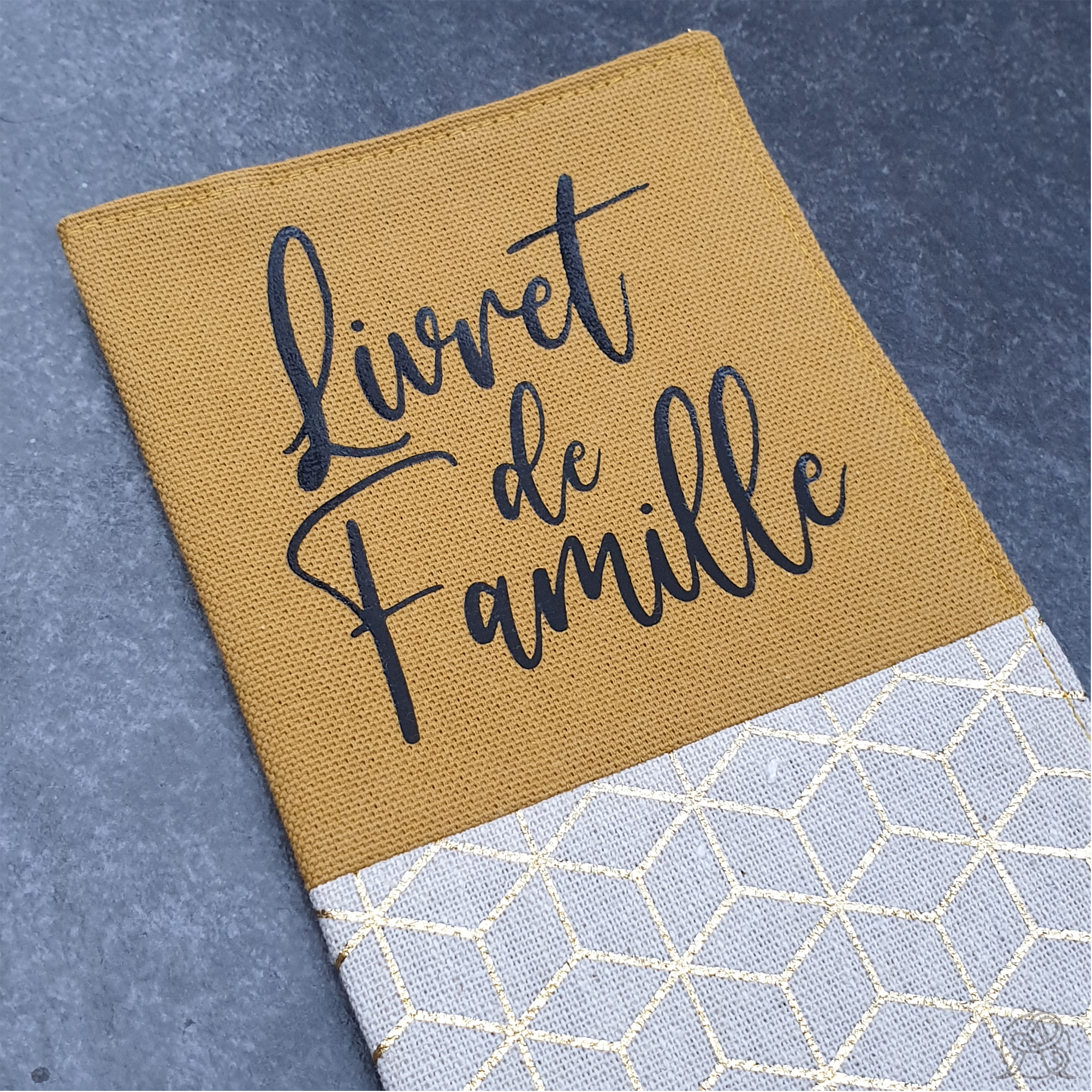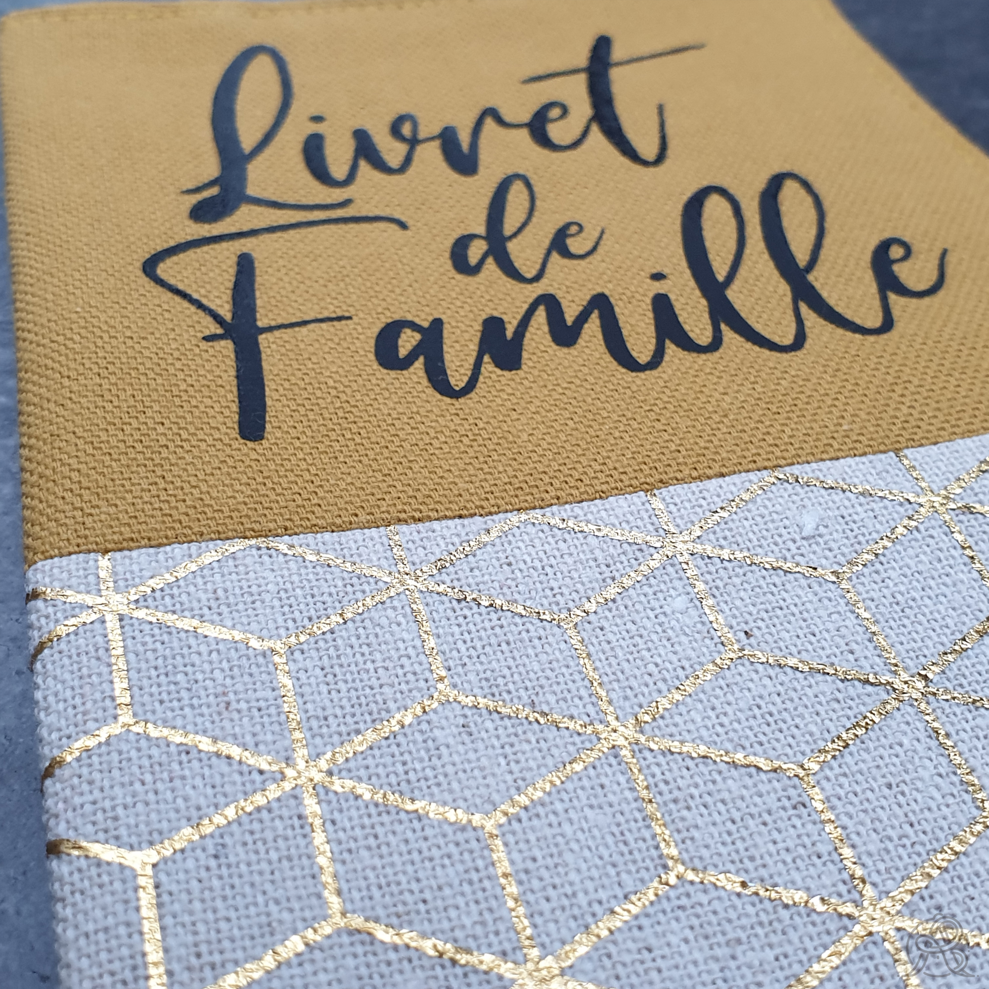 L’inscription « Livret de Famille » est flocké dans le coloris noir.